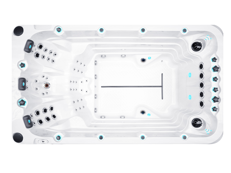 The Activity 1 Swim Spa is a compact swim spa that combines 3 massage seats with the River Swim System, allowing for a vigorous swim while keeping your head comfortably above the water level. The force and flow of the stream can be used in combination with our unique Current-Lift technology™, enabling you to also remain prone in the water even while swimming at a slower pace. The three massage seats are designed for different body lengths and incorporate specially designed massage techniques including our exclusive Passion Spas Aqua Rolling Massage™, one of our most popular and effective massage features.