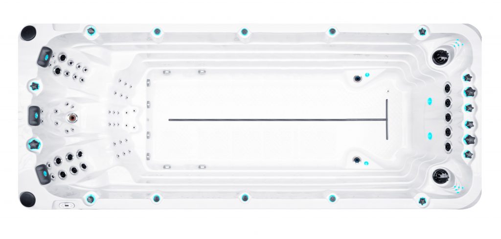 The new Activity 2 Swim Spa is a longer version of the current model Activity 1. It has been added to the Passion Swim Spa collection because all swimmers who have tested the River Swim System in Activity 1 are thrilled. The River Swim System provides a continuous stream of water across the width of the pool, giving the swimmer a strong current to swim against. At the same time, the water surface is unbroken and remains calm, so you can keep your head dry without any problems. For all swimmers, the Activity 2 Swim Spa makes the dream of swimming and training efficiently in your own garden come true.